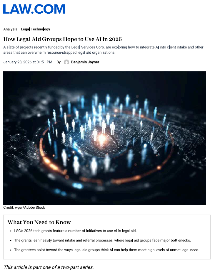 How Legal Aid Groups Hope to Use AI in 2026 - SMRLS Interview in law.com